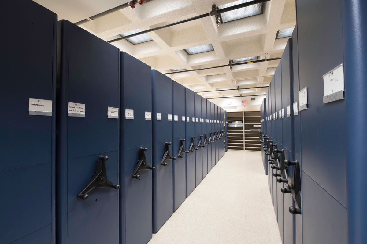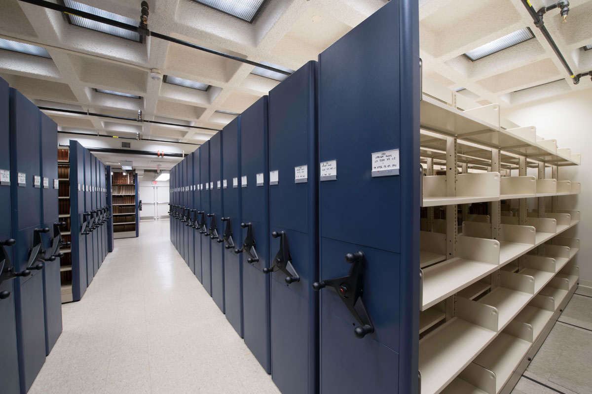 Our MobileTrak5 system allowed Vassar College to consolidate their collections into a sleek, space-saving layout that delivers both function and flexibility. By mounting shelving on mobile carriages that move effortlessly along floor tracks, the library can open access aisles only where and when they’re needed – dramatically reducing wasted space compared to traditional fixed shelving.