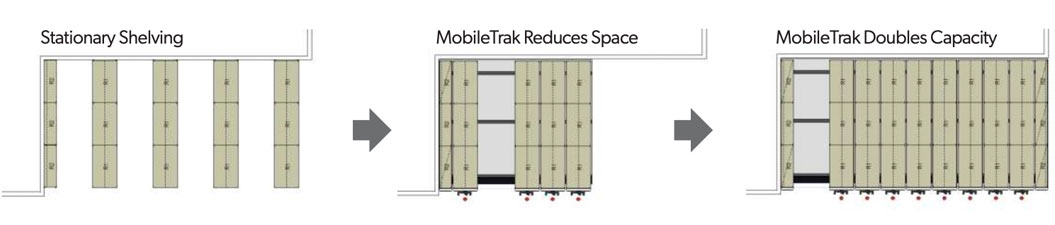 Check out the graphic below and read on to see how MobileTrak can deliver as much as 2x the storage within the same area that conventional shelving systems would require!